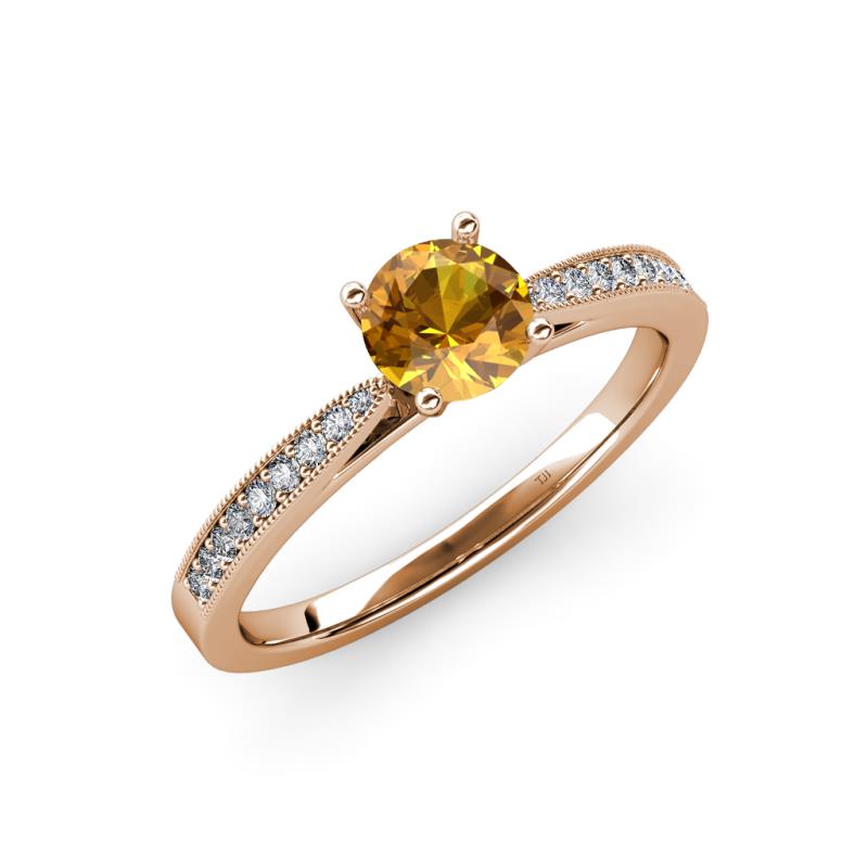 Citrine and Diamond Womens Engagement Ring with Milgrain Work 1.05 ctw 14K Rose Gold More Details ...
