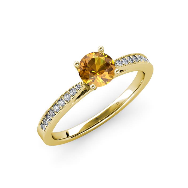 Citrine and Diamond Womens Engagement Ring with Milgrain Work 1.05 ctw 18K Yellow Gold More Details ...