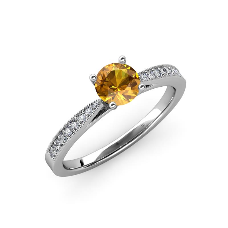 This 1.05 cttw Engagement Ring sparkles like no other,featuring astounding blooming Diamonds with Milgrain detailing to enrich the Center Citrine making an exceptional way to complement your fashion ensembles.