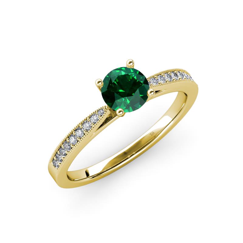 Emerald and Diamond Womens Engagement Ring with Milgrain Work 0.90 ctw 14K Yellow Gold More Details ...