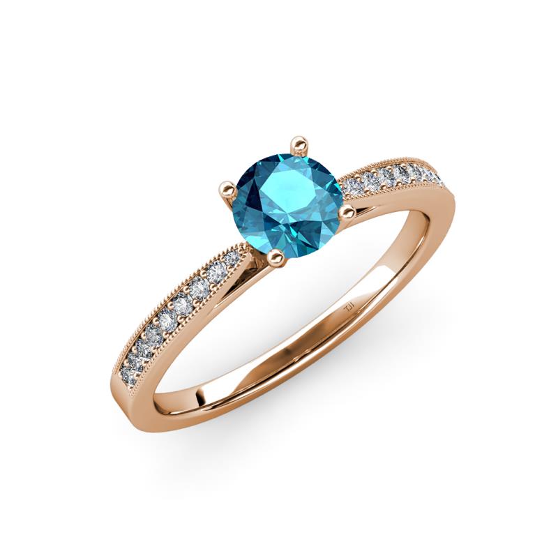 London Blue Topaz and Diamond Womens Engagement Ring with Milgrain Work 1.23 ctw 18K Rose Gold More Details ...