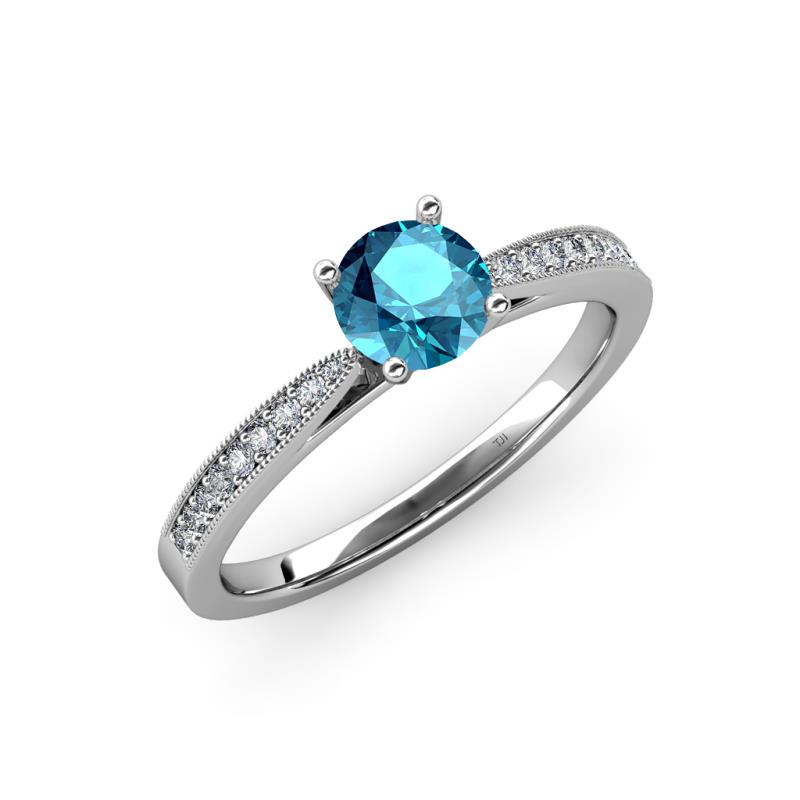 This 1.23 cttw Engagement Ring sparkles like no other,featuring astounding blooming Diamonds with Milgrain detailing to enrich the Center London Blue Topaz making an exceptional way to complement your fashion ensembles.