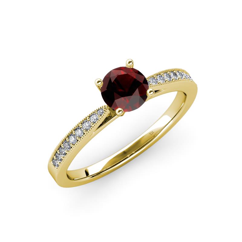 Red Garnet and Diamond Womens Engagement Ring with Milgrain Work 1.23 ctw 14K Yellow Gold More Details ...