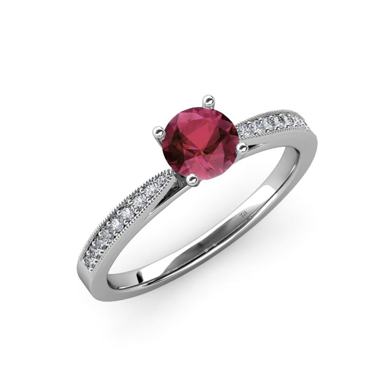 Rhodolite Garnet and Diamond Womens Engagement Ring with Milgrain Work 1.18 ctw 18K White Gold More Details ...