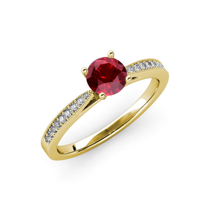 Ruby and Diamond Womens Engagement Ring with Milgrain Work 1.13 ctw 14K Yellow Gold More Details ...