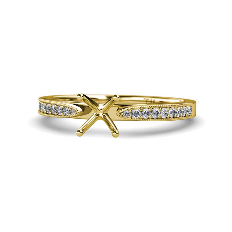 • Four Prong Semi Mount Engagement Ring with side Diamond of 0.18 cttw in 14K Yellow Gold.