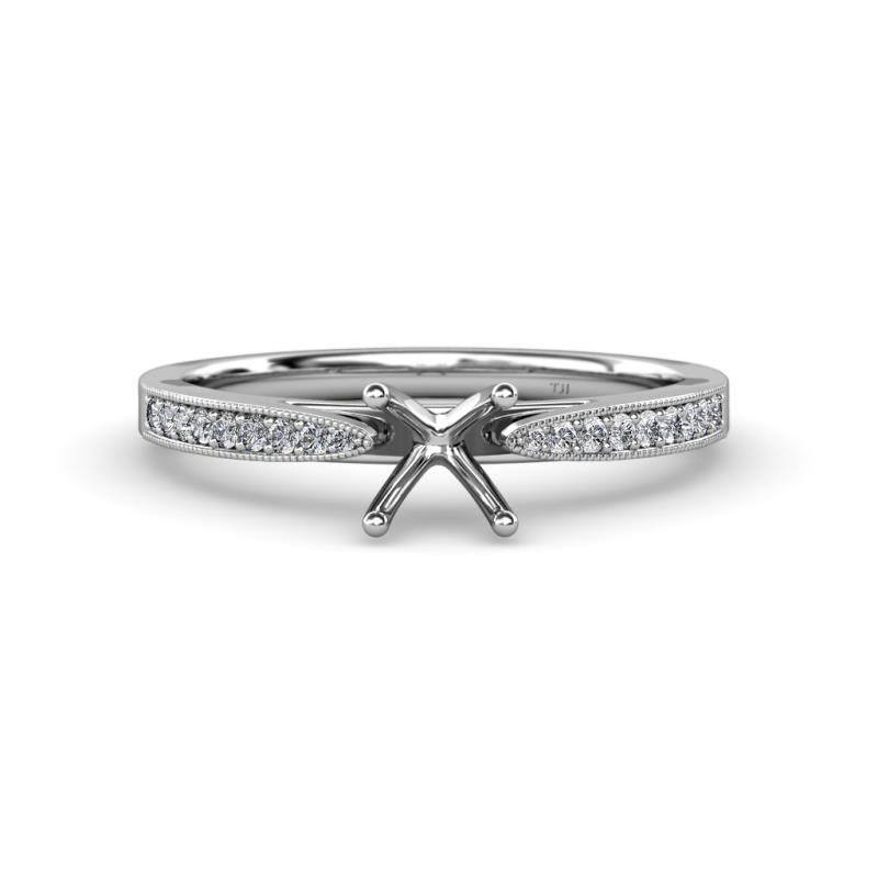 Diamond Four Prong Semi Mount Engagement Ring (VS2-SI1, F-G) with Milgrain Work 0.18 cttw in Platinum. More Details ...