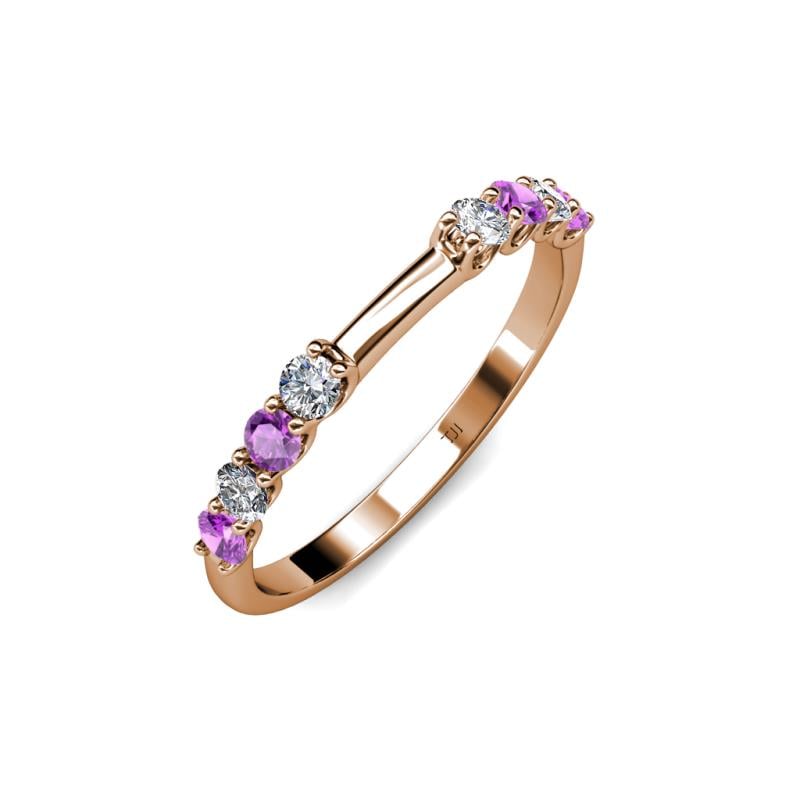 Amethyst and Diamond 8 Stone Womens Wedding Band Stackable 0.46 ctw 10K Rose Gold More Details ...