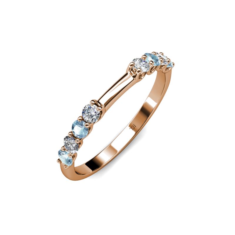 Aquamarine and Diamond 8 Stone Womens Wedding Band Stackable 0.46 ctw 14K Rose Gold More Details ...