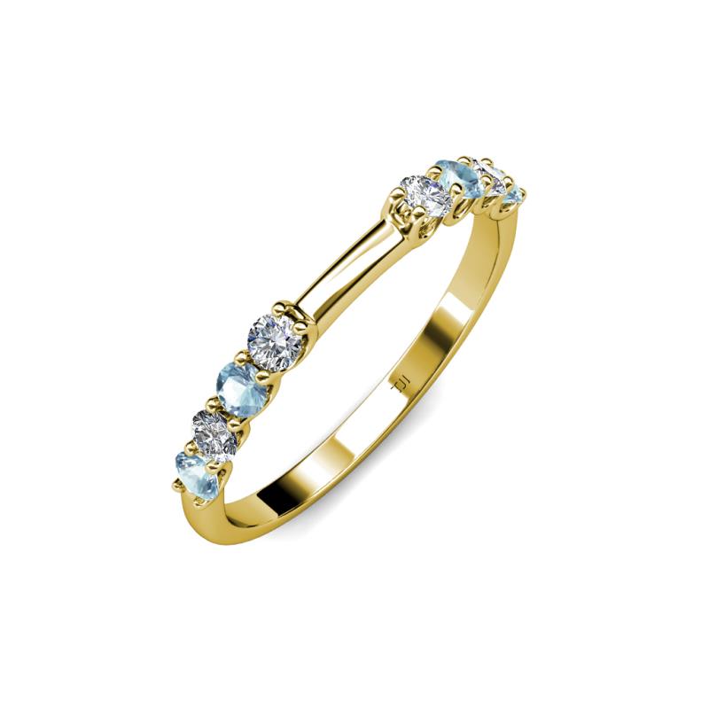 Aquamarine and Diamond 8 Stone Womens Wedding Band Stackable 0.46 ctw 10K Yellow Gold More Details ...