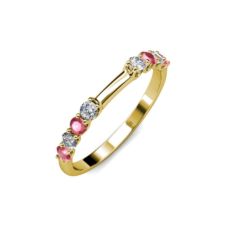 Pink Tourmaline and Diamond 8 Stone Womens Wedding Band Stackable 0.46 ctw 10K Yellow Gold More Details ...