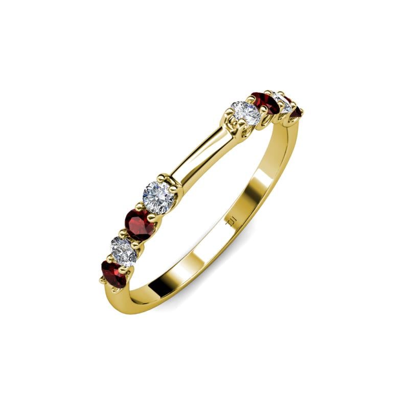 Red Garnet and Diamond 8 Stone Womens Wedding Band Stackable 0.55 ctw 10K Yellow Gold More Details ...