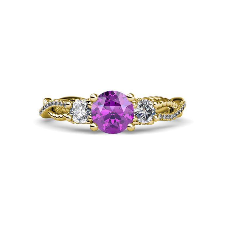 Round Amethyst and Diamond 1 1/2 ctw Womens Three Stone Engagement Ring 18K Yellow Gold More Details ...