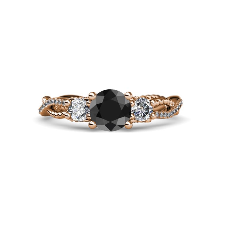 Round Black and White Diamond 1 5/8 ctw Womens Three Stone Engagement Ring 18K Rose Gold More Details ...