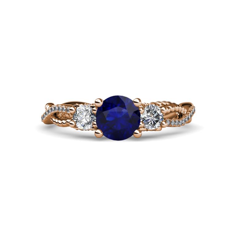 Round Blue Sapphire and Diamond 1 1/2 ctw Womens Three Stone Engagement Ring 14K Rose Gold More Details ...