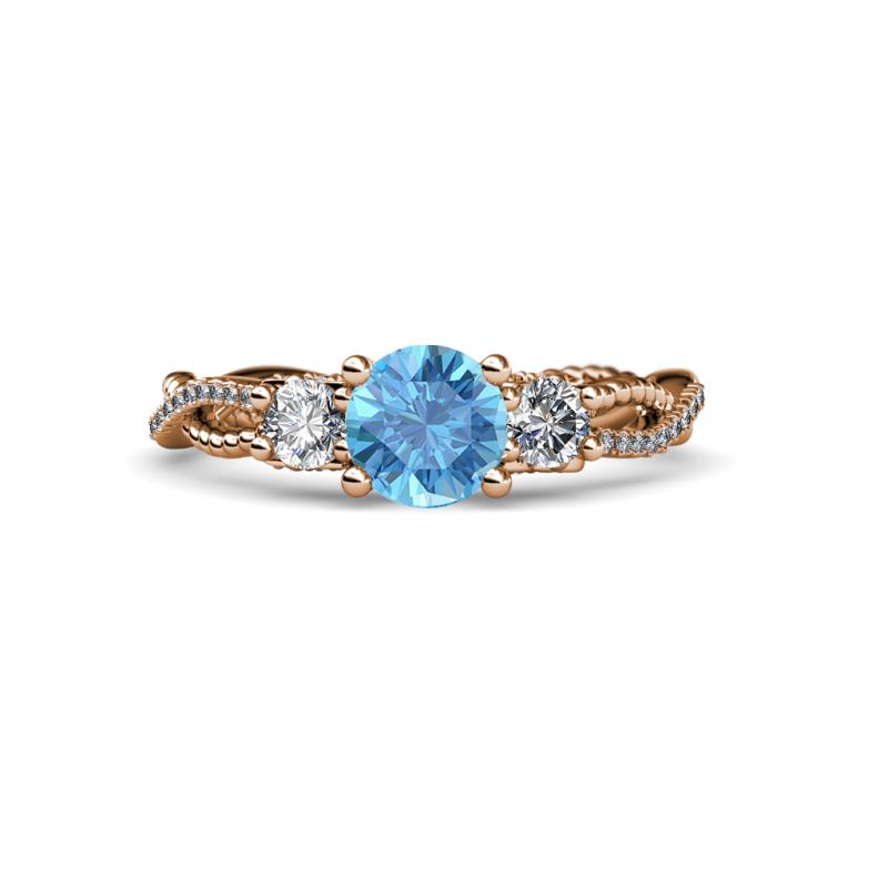Round Blue Topaz and Diamond 1 1/2 ctw Womens Three Stone Engagement Ring 14K Rose Gold More Details ...
