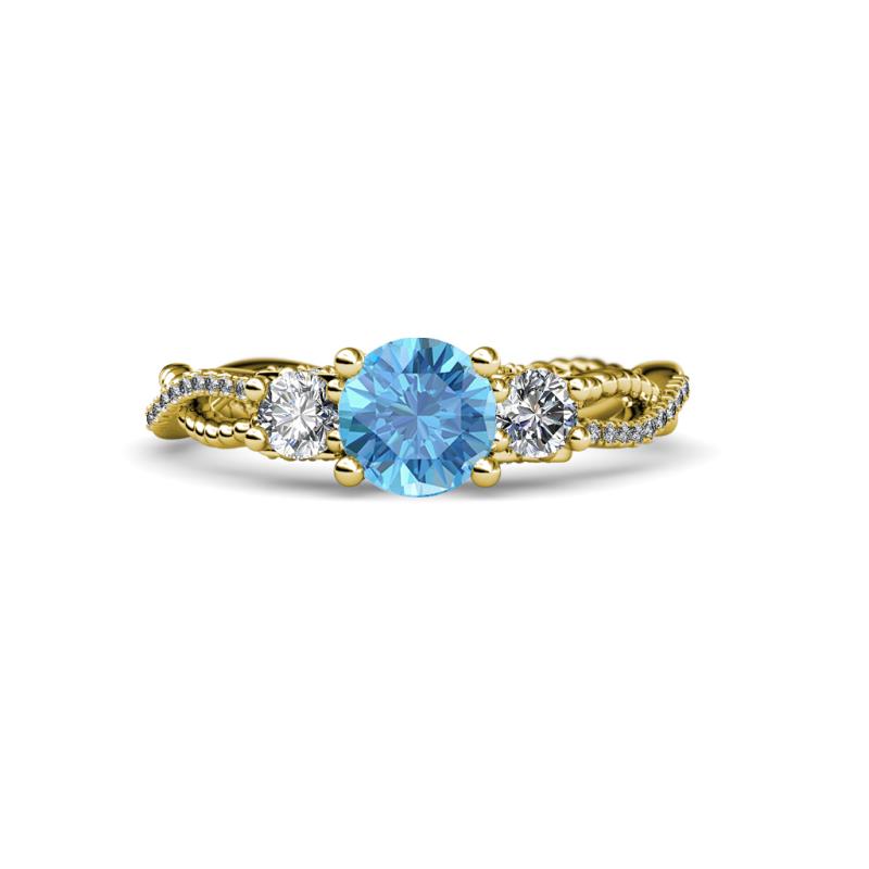Round Blue Topaz and Diamond 1 1/2 ctw Womens Three Stone Engagement Ring 18K Yellow Gold More Details ...