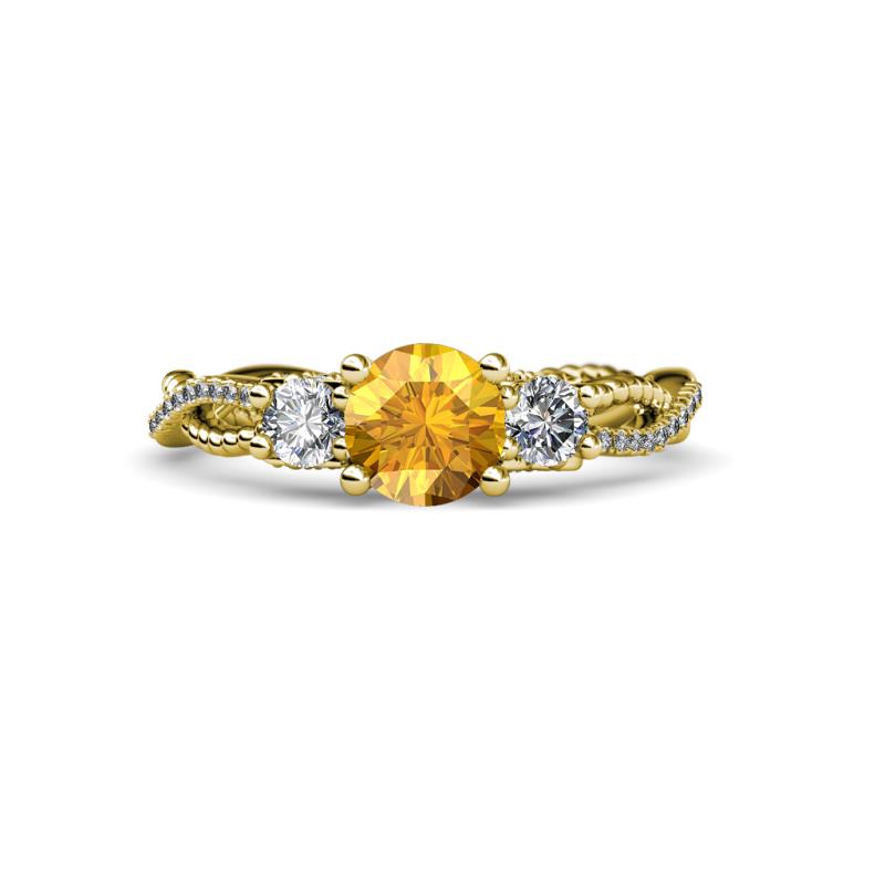 Round Citrine and Diamond 1 1/2 ctw Womens Three Stone Engagement Ring 14K Yellow Gold More Details ...