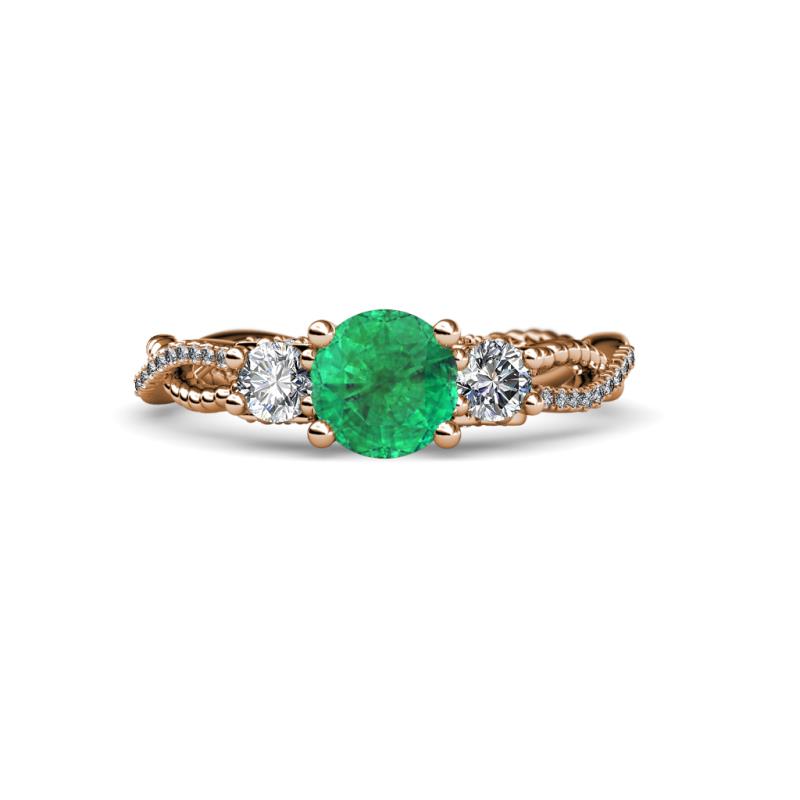 Round Emerald and Diamond 1 1/3 ctw Womens Three Stone Engagement Ring 14K Rose Gold More Details ...