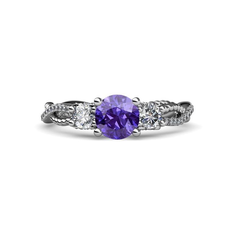 Round Iolite and Diamond 1 1/2 ctw Womens Three Stone Engagement Ring Platinum More Details ...
