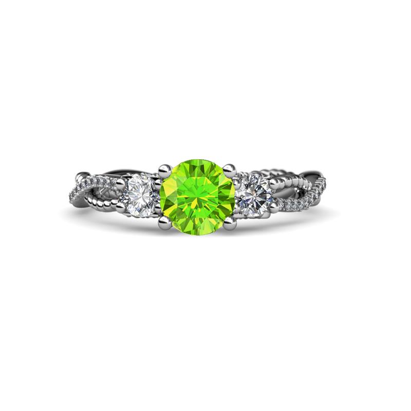 Round Peridot and Diamond 1 3/4 ctw Womens Three Stone Engagement Ring Platinum More Details ...