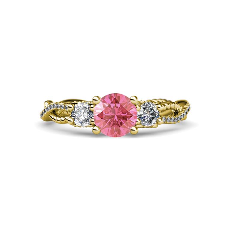 Round Pink Tourmaline and Diamond 1 1/2 ctw Womens Three Stone Engagement Ring 14K Yellow Gold More Details ...