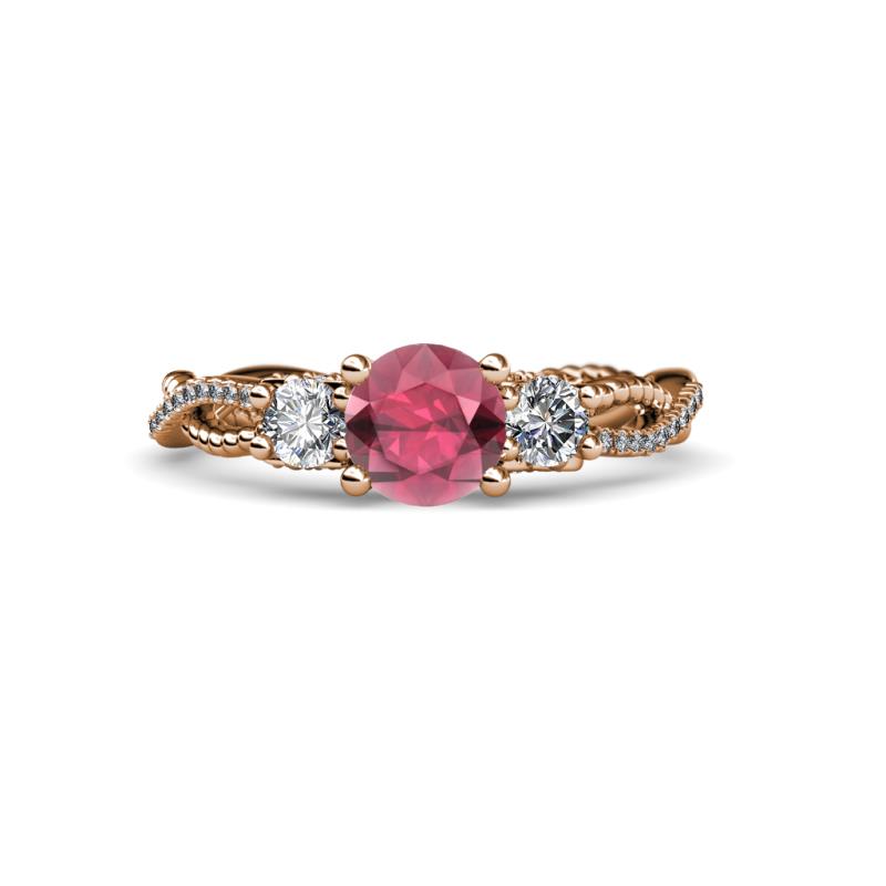 Round Rhodolite Garnet and Diamond 1 5/8 ctw Womens Three Stone Engagement Ring 14K Rose Gold More Details ...