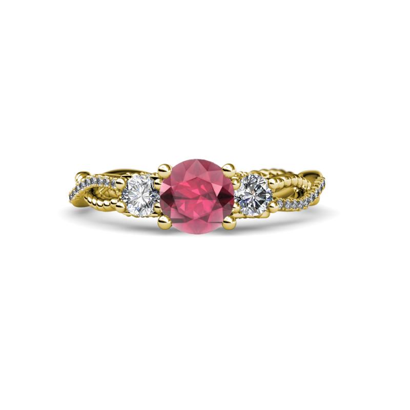 Round Rhodolite Garnet and Diamond 1 5/8 ctw Womens Three Stone Engagement Ring 18K Yellow Gold More Details ...