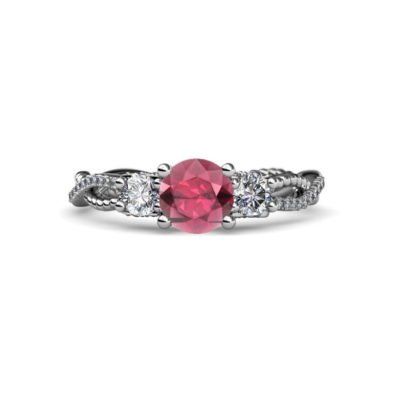 Round Rhodolite Garnet and Diamond 1 5/8 ctw Womens Three Stone Engagement Ring Platinum More Details ...