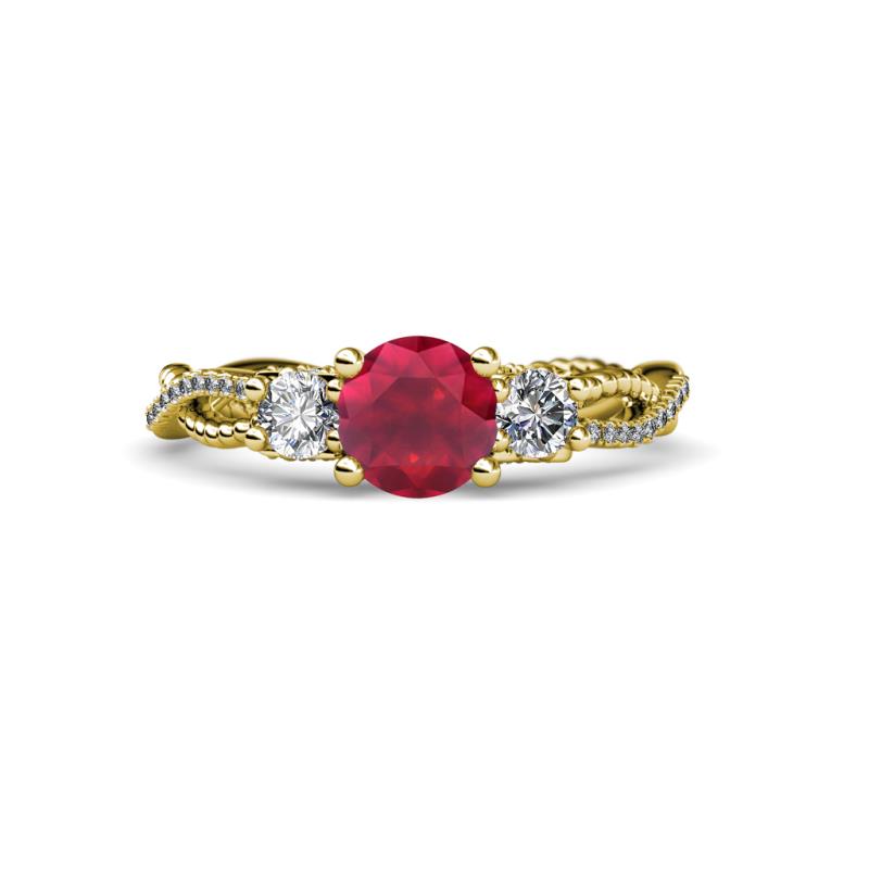 Round Ruby and Diamond 1 1/2 ctw Womens Three Stone Engagement Ring 14K Yellow Gold More Details ...