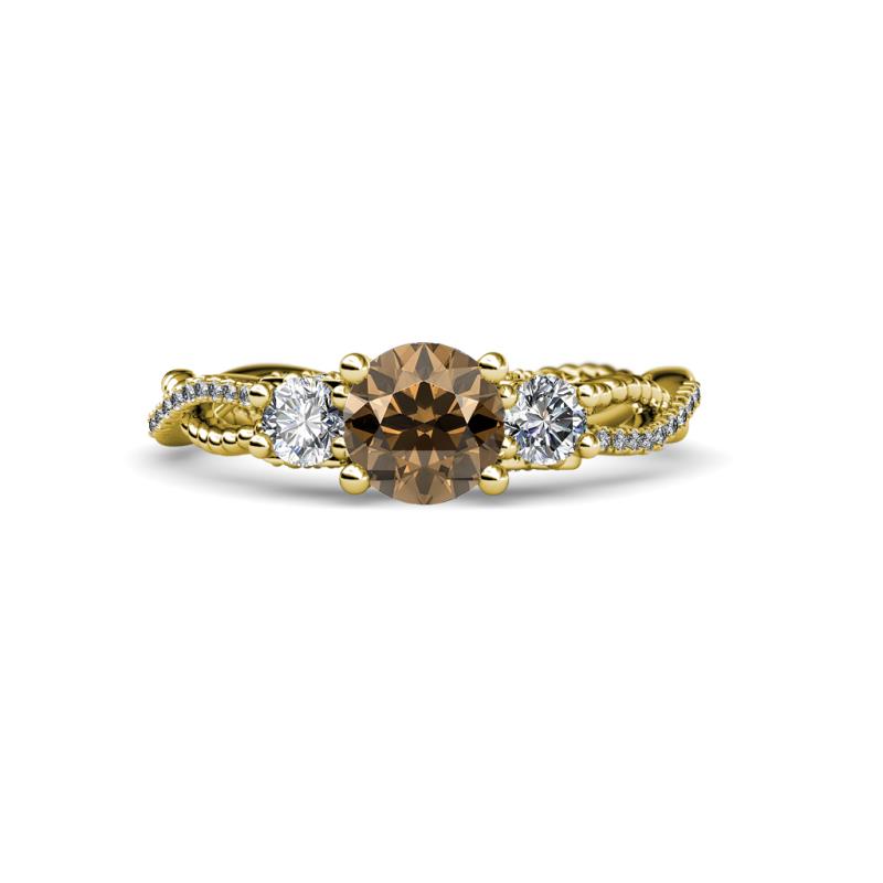 Round Smoky Quartz and Diamond 1 5/8 ctw Womens Three Stone Engagement Ring 18K Yellow Gold More Details ...