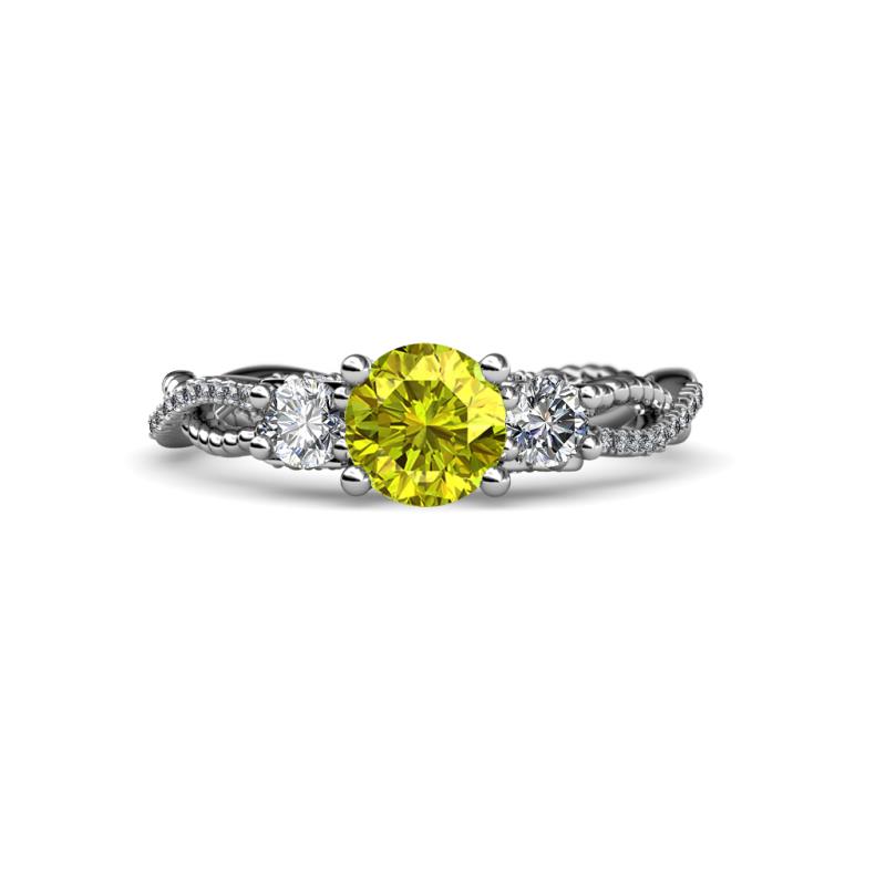 Round Yellow and White Diamond 1 5/8 ctw Womens Three Stone Engagement Ring 18K White Gold More Details ...