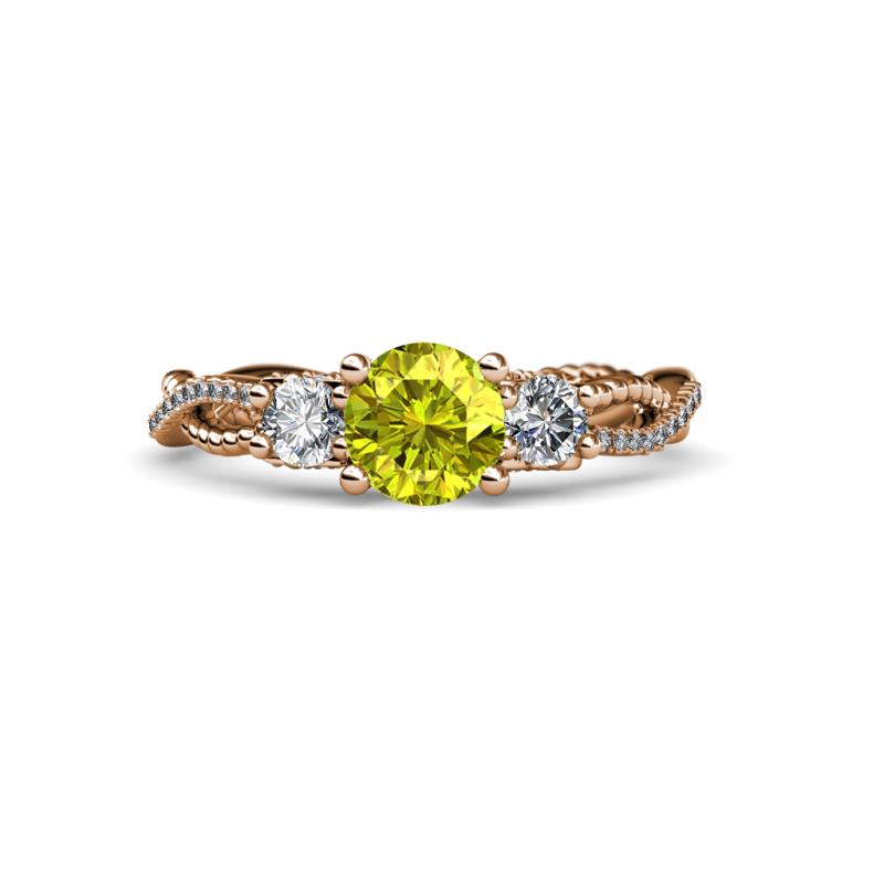 Round Yellow and White Diamond 1 5/8 ctw Womens Three Stone Engagement Ring 18K Rose Gold More Details ...