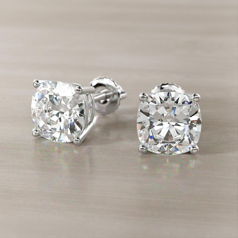 Elevate your style with our 4.00 ctw Cushion Shape IGI Certified Lab Grown Diamond Solitaire Ear Studs, prong-set for brilliance. The secure screw-back design makes them perfect for any occasion.