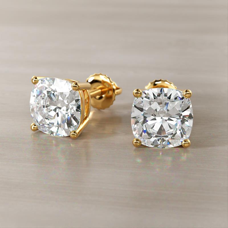 IGI Certified Cushion Shape Lab Grown Diamond Four Prongs Solitaire Stud Earrings of 6.00 ctw in 18K Yellow Gold More Details ...
