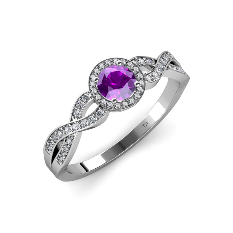 Amethyst and Diamond Swirl Womens Halo Engagement Ring 0.93 ctw 14K White Gold More Details ...