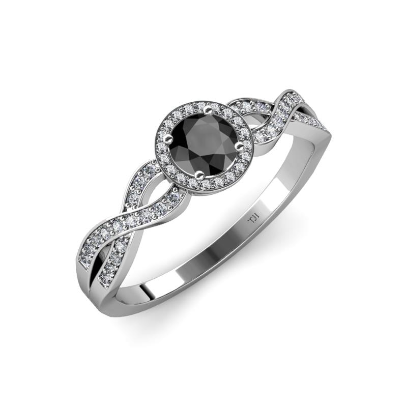 Show your style with this stunning 1.19 ct tw Engagement Ring which features a Center Black Diamond wrapped with a frame of glittering Halo White Diamond along with swirl diamond-lined shank completing the look.