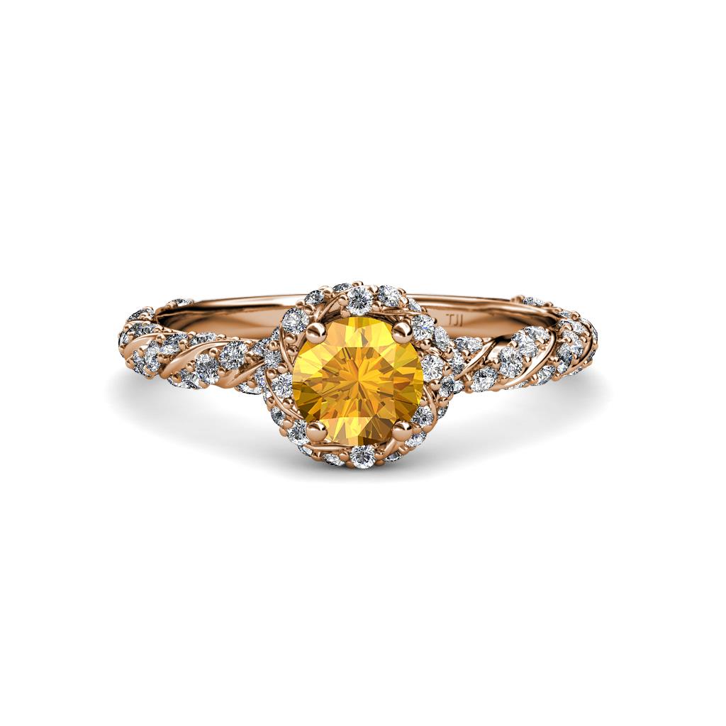1 1/4 ctw Round Citrine and Diamond Womens Halo Engagement Ring 18K Rose Gold More Details ...