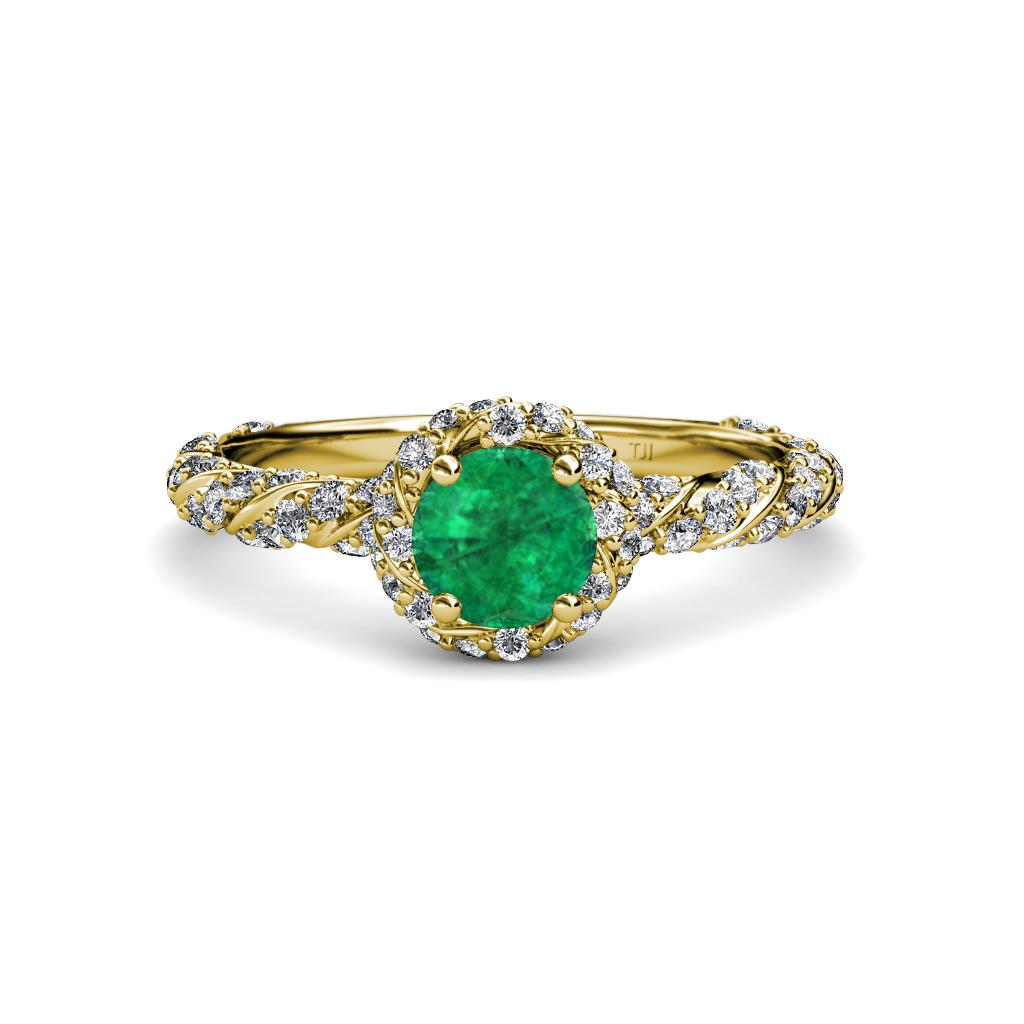 1 1/4 ctw Round Emerald and Diamond Womens Halo Engagement Ring 18K Yellow Gold More Details ...