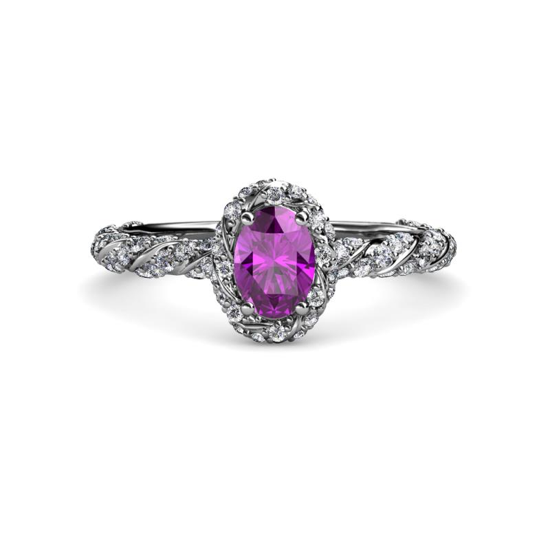 Oval Cut (7x5 mm) Amethyst and Diamond Womens Halo Engagement Ring 1.50 ctw 14K White Gold More Details ...