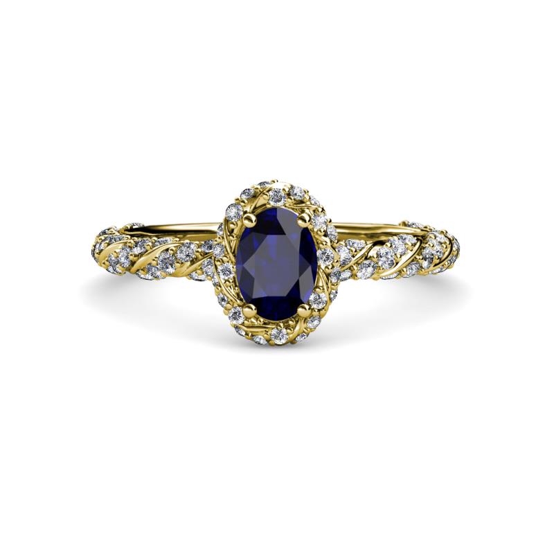 Oval Cut (7x5 mm) Blue Sapphire and Diamond Womens Halo Engagement Ring 1.65 ctw 14K Yellow Gold More Details ...