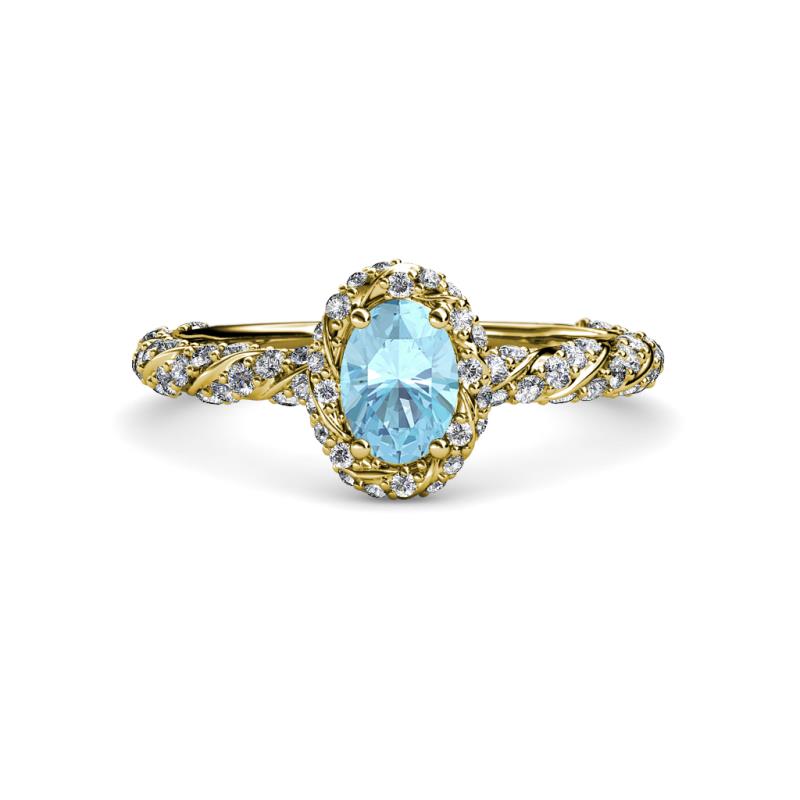 Oval Cut (7x5 mm) Aquamarine and Diamond Womens Halo Engagement Ring 1.50 ctw 14K Yellow Gold More Details ...