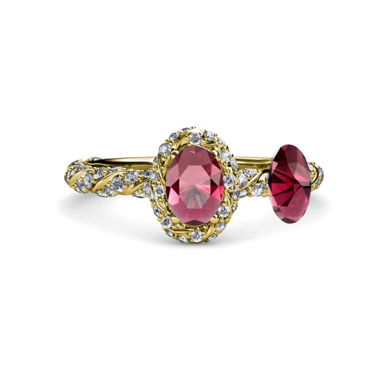 Oval Cut (7x5 mm) Garnet and Diamond Womens Halo Engagement Ring 1.65 ctw 14K Yellow Gold More Details ...