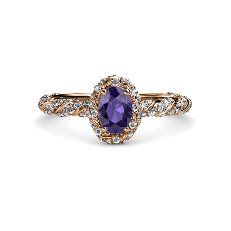 Oval Cut (7x5 mm) Iolite and Diamond Womens Halo Engagement Ring 1.50 ctw 14K Rose Gold More Details ...