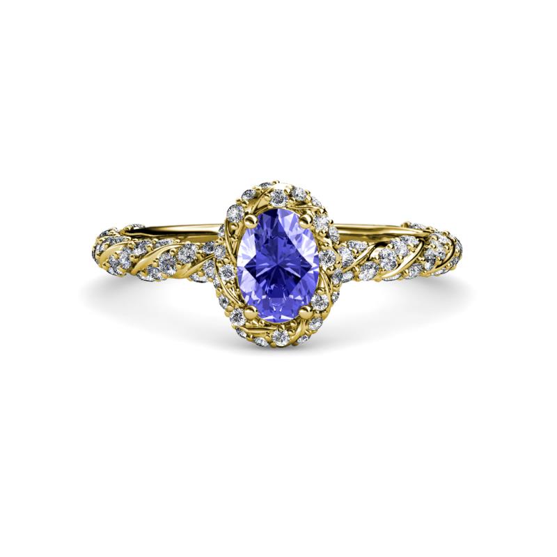 Oval Cut (7x5 mm) Tanzanite and Diamond Womens Halo Engagement Ring 1.60 ctw 18K Yellow Gold More Details ...