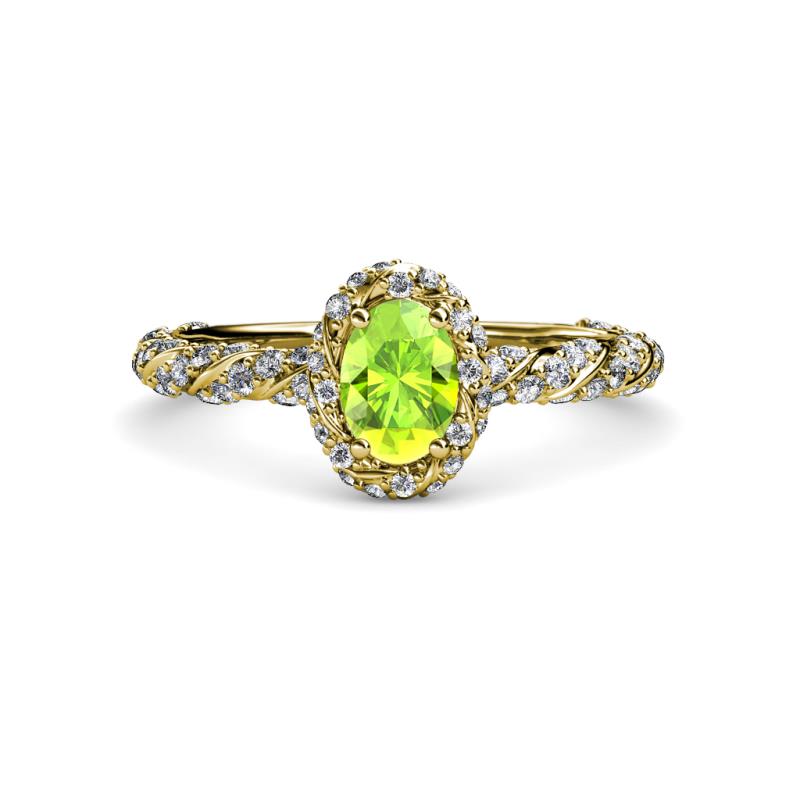 Oval Cut (7x5 mm) Peridot and Diamond Womens Halo Engagement Ring 1.60 ctw 18K Yellow Gold More Details ...