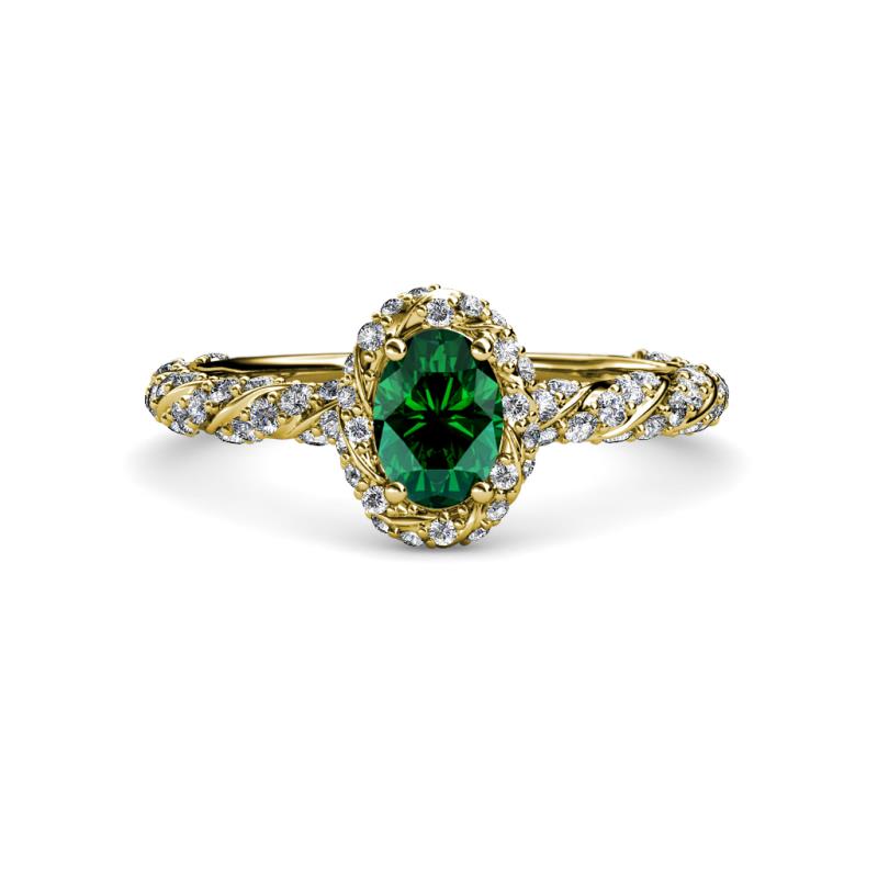 Oval Cut (7x5 mm) Emerald and Diamond Womens Halo Engagement Ring 1.50 ctw 18K Yellow Gold More Details ...