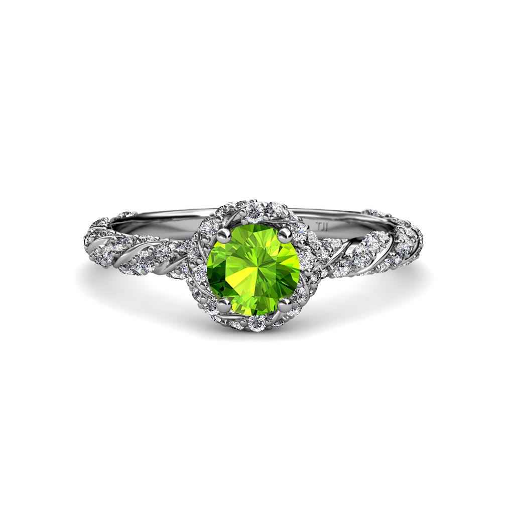 1 2/5 ctw Round Peridot and Diamond Womens Halo Engagement Ring 18K White Gold More Details ...