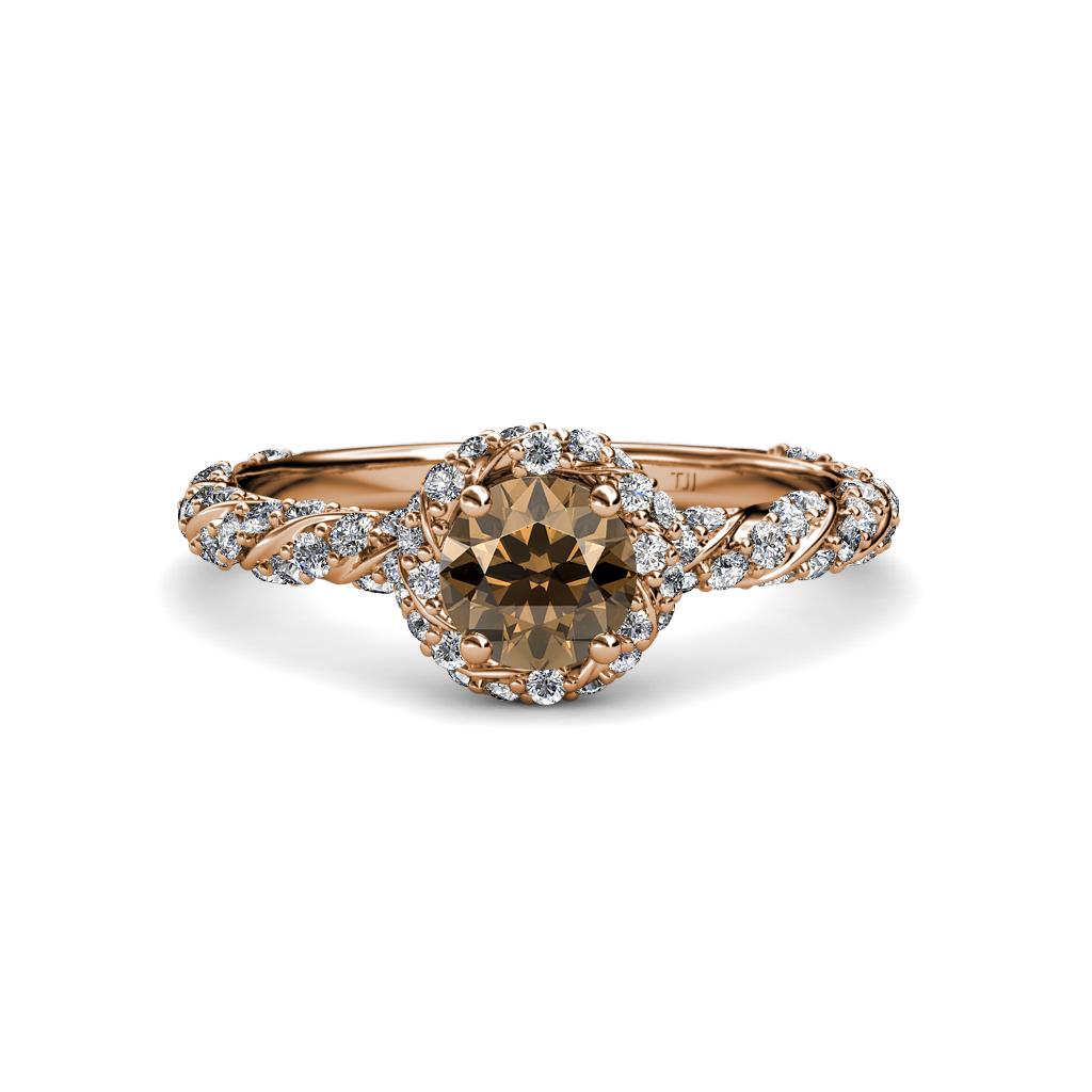 1 2/5 ctw Round Smoky Quartz and Diamond Womens Halo Engagement Ring 14K Rose Gold More Details ...