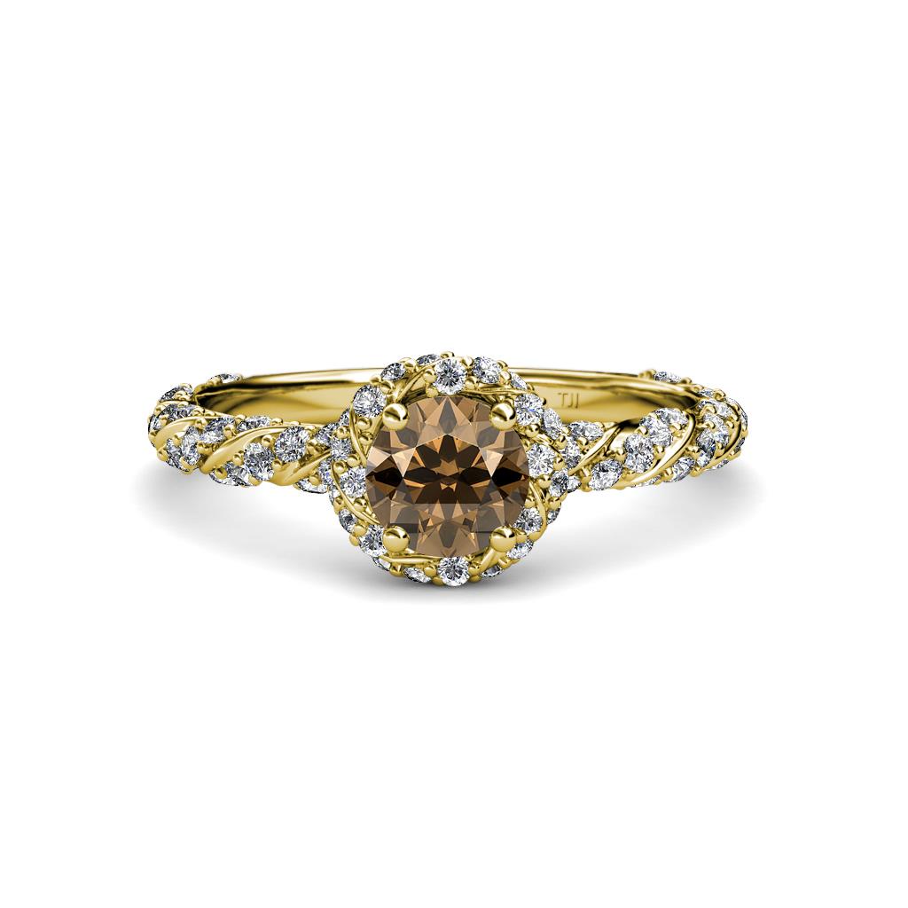 1 2/5 ctw Round Smoky Quartz and Diamond Womens Halo Engagement Ring 18K Yellow Gold More Details ...